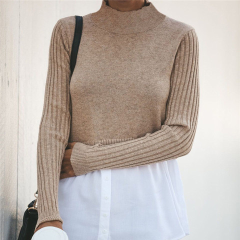秋季女装高领长袖针织毛衣保暖拼接修身女装上衣批发